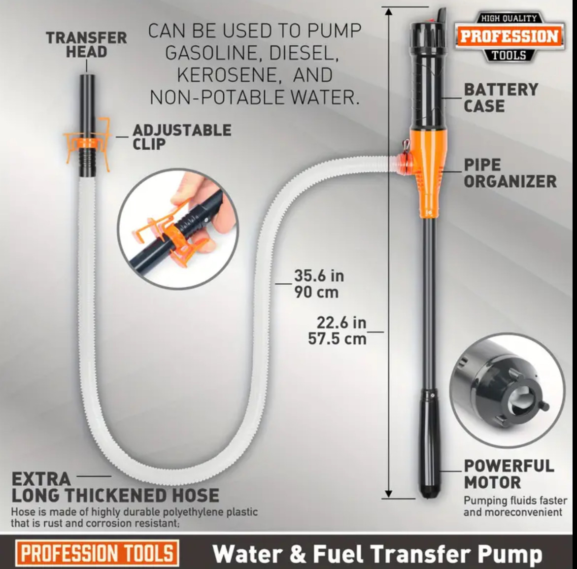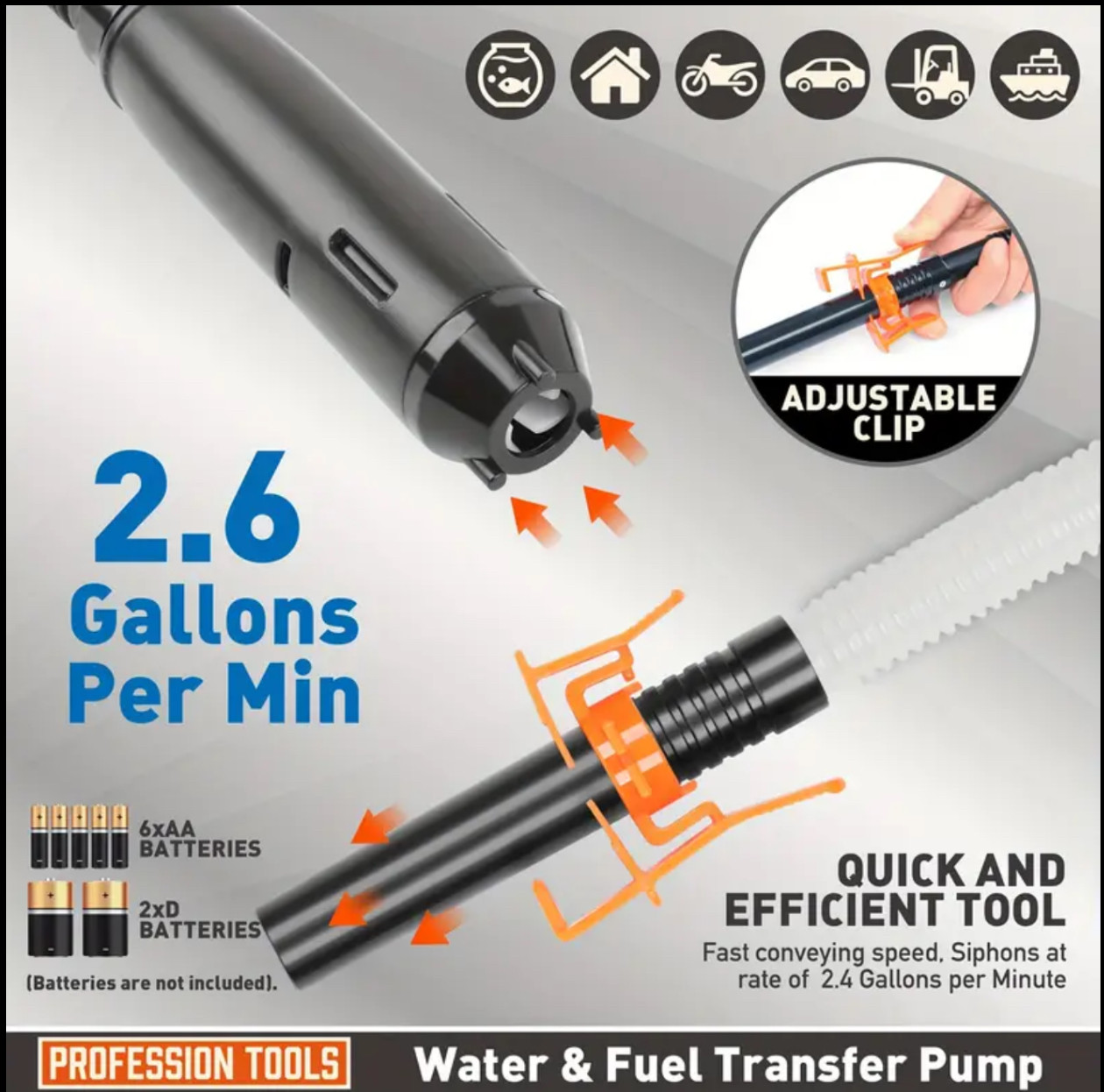 Power battery liquid transfer pump, 2.6GPM, water and fuel transfer pump, electric oil well pump, car fuel tank oil well pump